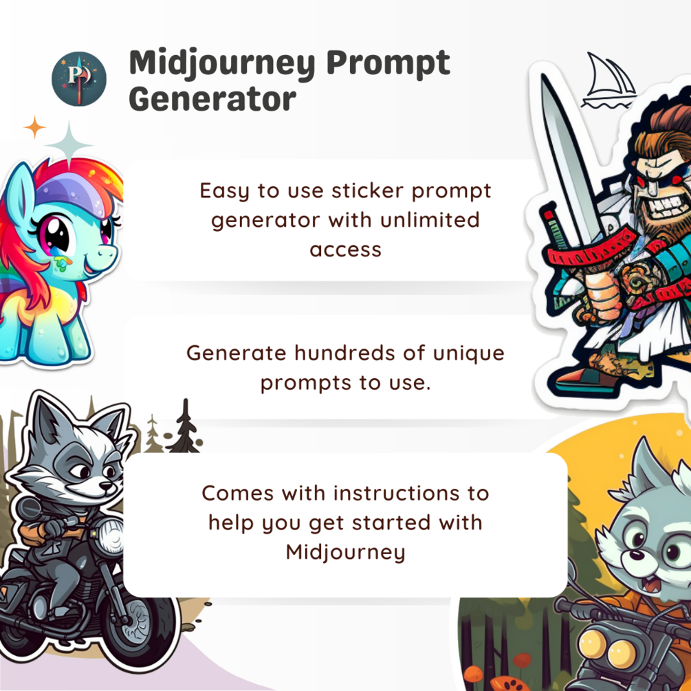 You'll also receive some instructions on how to get started with Midjourny and how to use the prompt generator to generate some incredible stickers.